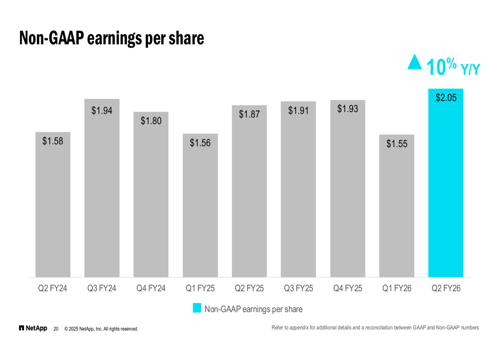 Overall, NetApp’s Q2 FY26 results demonstrate the company’s successful execution of its strategy to capitalize on growing demand for intelligent data infrastructure, particularly in AI and cloud environments. With record margins, strong EPS growth, and raised guidance, NetApp appears well-positioned to continue its positive trajectory in the coming quarters.