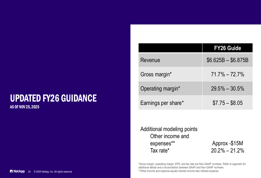 Based on its strong performance, NetApp provided optimistic guidance for the upcoming quarter and raised its full-year outlook. For Q3 FY26, the company expects: