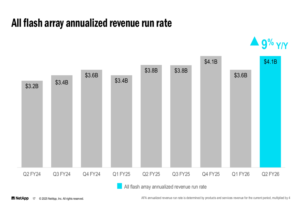 All Flash Array annualized revenue run rate reached $4.1 billion, representing 9% year-over-year growth: